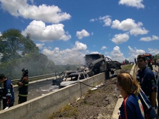 Dois adultos e uma criança morrem após explosão em acidente na BR-101