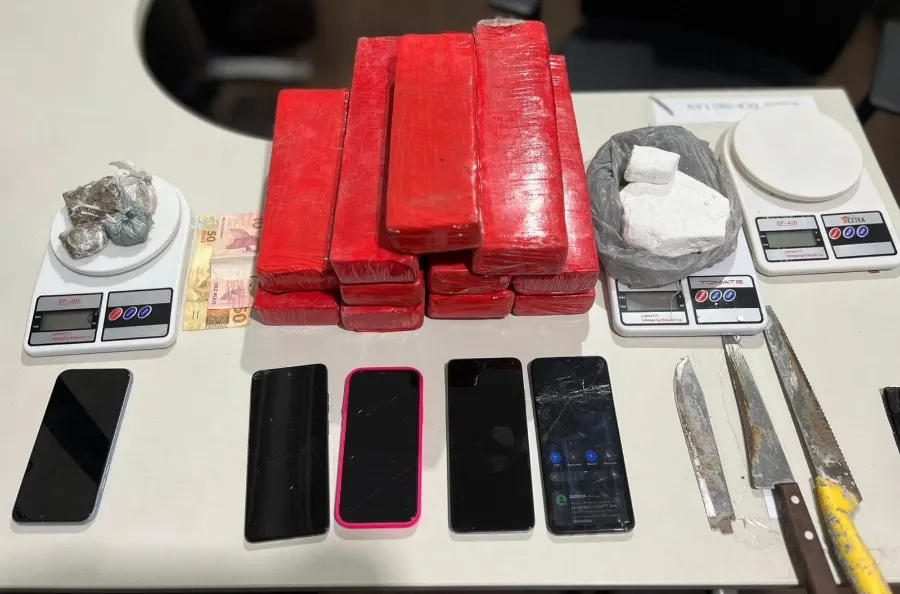 Dando continuidade às diligências, as equipes conseguiram localizar mais dois pontos de apoio ao tráfico, sendo um deles situado no bairro Valadares e outro no Recanto Verde, onde mais uma pessoa foi presa. Nesses endereços foram encontrados quantidades adicionais de maconha, cocaína, balanças e apetrechos usados no fracionamento da droga, evidenciando a estrutura organizada da associação criminosa.