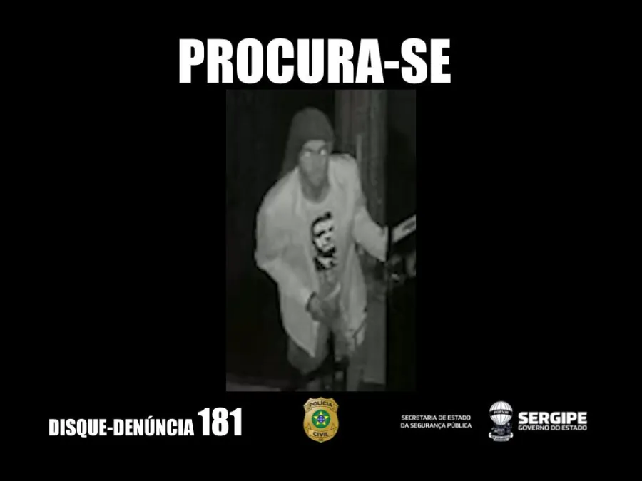 Nesta segunda-feira, 5, a Polícia Civil de Sergipe divulga imagens de um homem suspeito de furtar um estúdio de treinamento personalizado localizado em Aracaju. O crime foi registrado durante a madrugada, ocasião em que foram subtraídos um televisor e um aparelho celular.