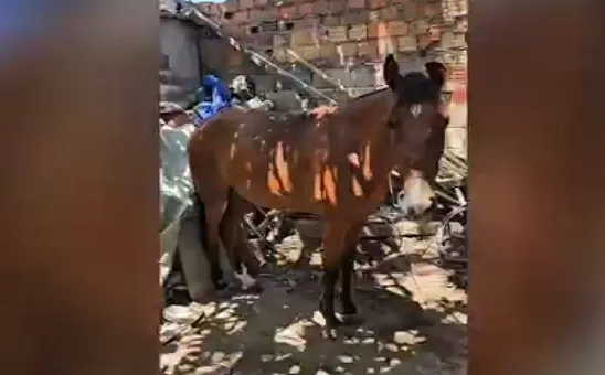 Diante da informação recebida, os policiais civis iniciaram diligências na região indicada com o objetivo de localizar o animal e o responsável. Após as buscas, a equipe encontrou o cavalo em um terreno nas proximidades, juntamente com o condutor.