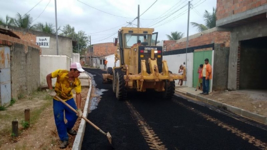 Também foi realizada a obra de imprimação, que consiste na aplicação de uma fina película de material betuminoso sobre o pavimento para aumentar acoesão da superfície e melhorar as condições de aderência entre as camadas do pavimento, nas ruas Clara Angélica, da Alegria ‘A’, Yasmin Catarine, Santo Antônio, Travessa Nossa Senhora de Fátima, São Marcos, Limão, Novo Horizonte, Frei Damião, São Francisco, São José e São Lucas.