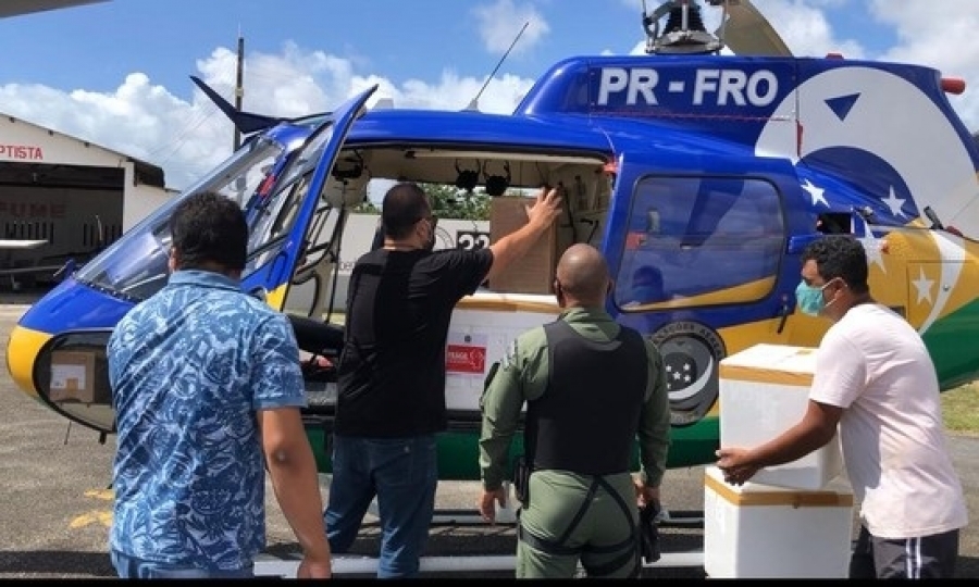 O helicóptero do Grupamento Tático Áereo (GTA) decolou do Aeroclube de Sergipe por volta das 10h desta terça-feira, 19, carregado de doses da vacina CoronaVac (Instituto Butantan/Laboratório Sinovac) para ser entregue aos municípios do sertão sergipano. São eles: Canindé de São Francisco, Nossa Senhora da Glória, e Porto da Folha.