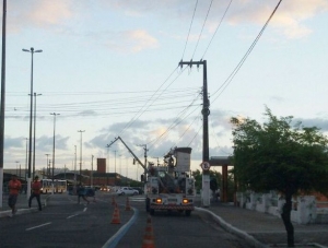 Acidente deixa poste pendurado a fios no Centro de Aracaju
