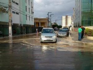 Vazamento de água causa transtornos em cruzamento da rua Itabaiana com Riachuelo